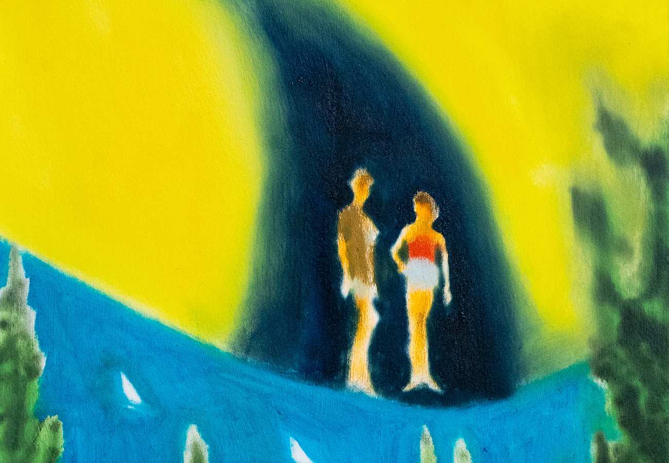 映像的な知覚を起点に、時間の推移や記憶の重なり、視覚体験の断片性を絵画へと落とし込んできた加藤。画面には風景や人物、光の気配が断片的に現れ、物語として固定されることなく、観る者の視線によって関係性が変化していく。複数のイメージを同一画面に併置する独自の手法により、異なる時間や場面が同時に立ち上がるような絵画空間が生まれる。